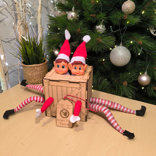 🎅🛷 Elfo Travieso con Trineo de Madera 🎄