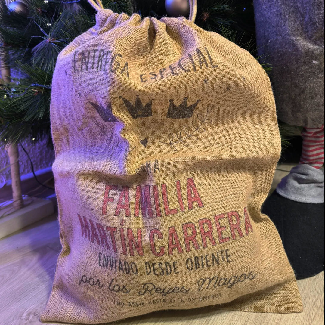 Sorprende a los peques con este saco especial, perfecto para que los Reyes Magos dejen sus regalos de una forma única y mágica 🎁🌟. ¡Personalízalo con el nombre de tu familia y convierte la entrega de regalos en un momento inolvidable!