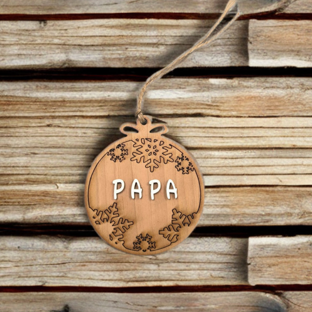 Decora el árbol con un toque elegante y natural con esta preciosa bola de Navidad con copos de nieve en relieve, elaborada en madera de alta calidad 🌿. Personalizada con nombre, combina dos tonos de madera para crear un contraste único y encantador ✨.