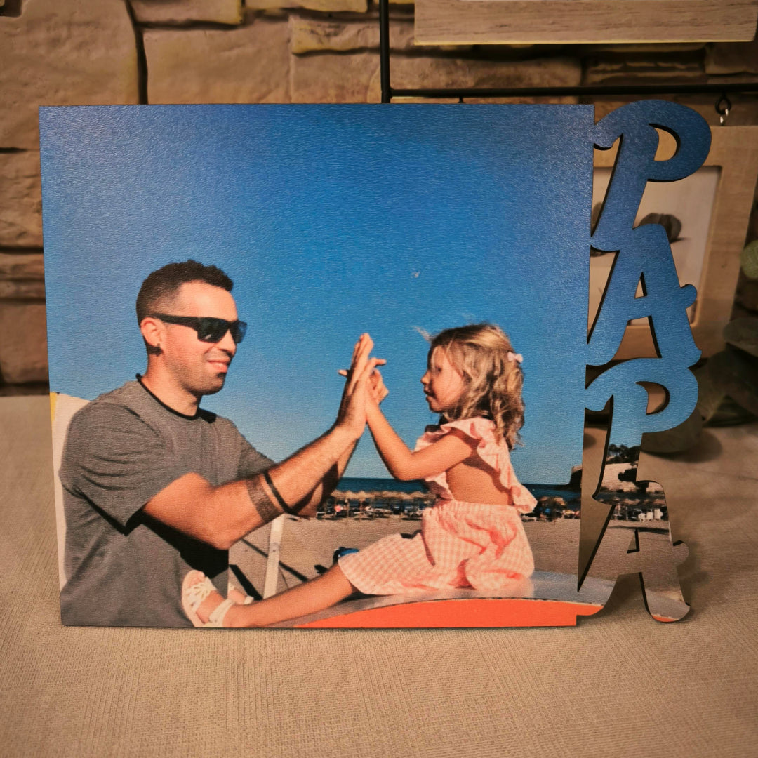 - Corte láser con nombre o palabra personalizada (ejemplo: PAPÁ).
