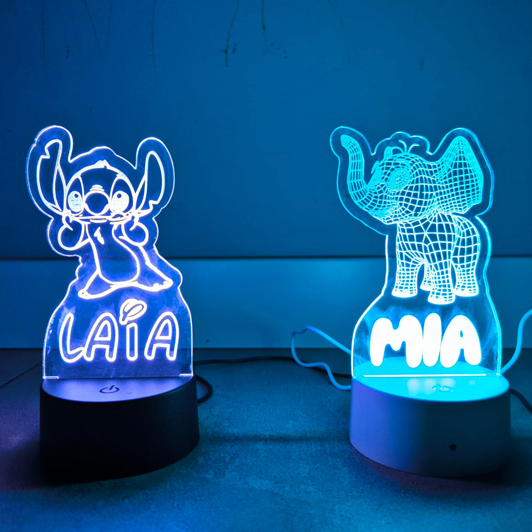 - Lámpara de metacrilato personalizada con nombre y silueta.