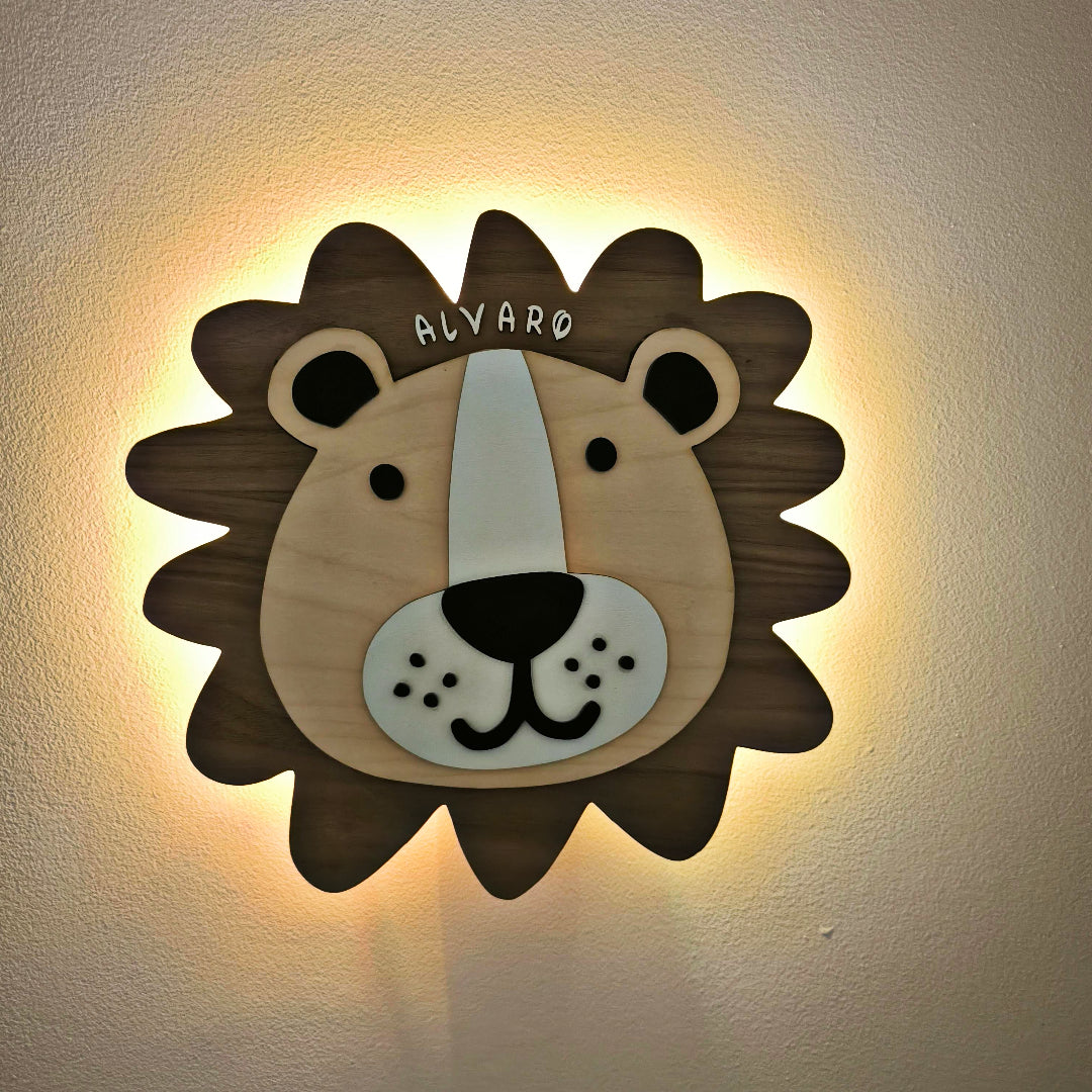 🦁✨ Lámpara Infantil de Madera ✨🦁