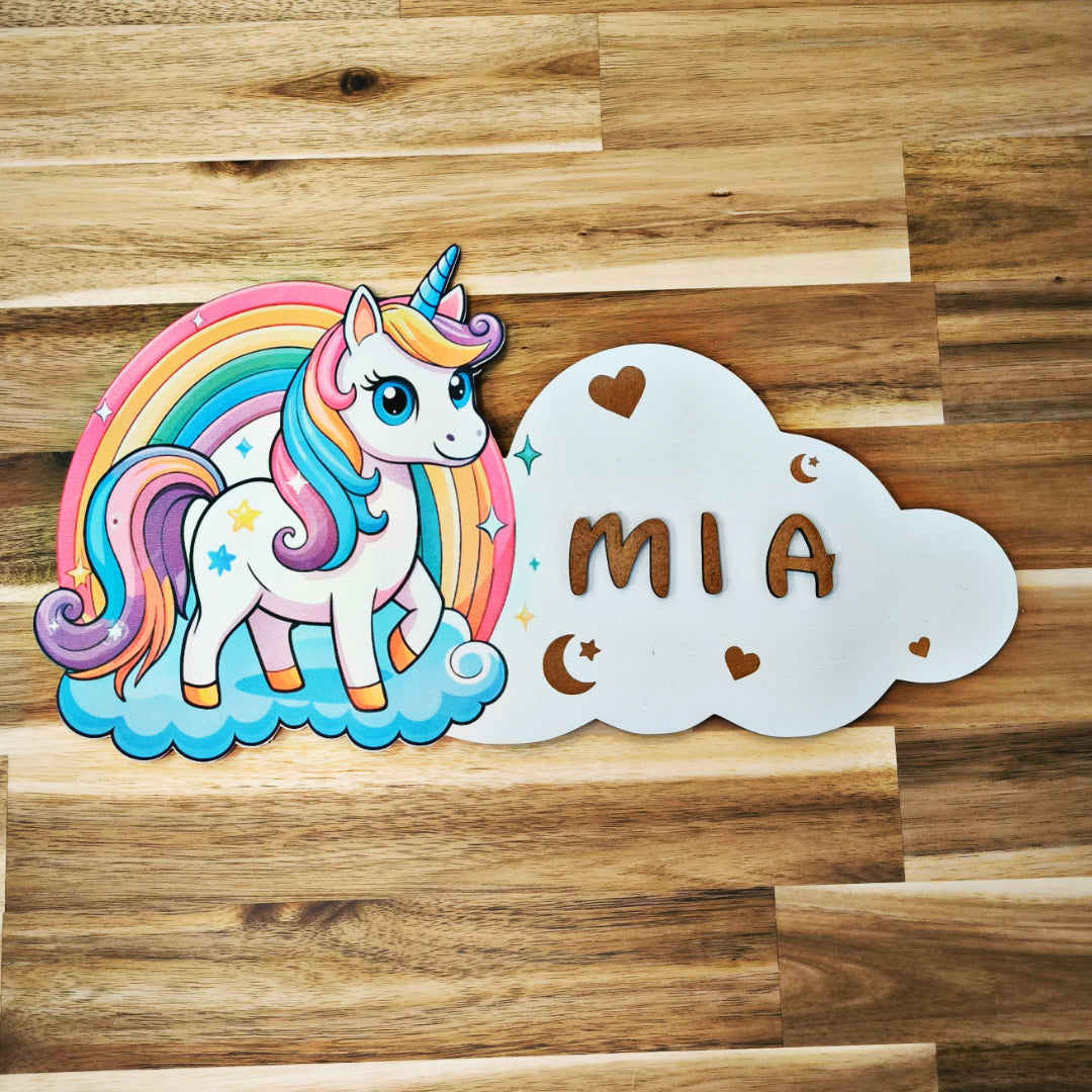 - Diseño en forma de nube con estrellas y personajes del Unicornio.
