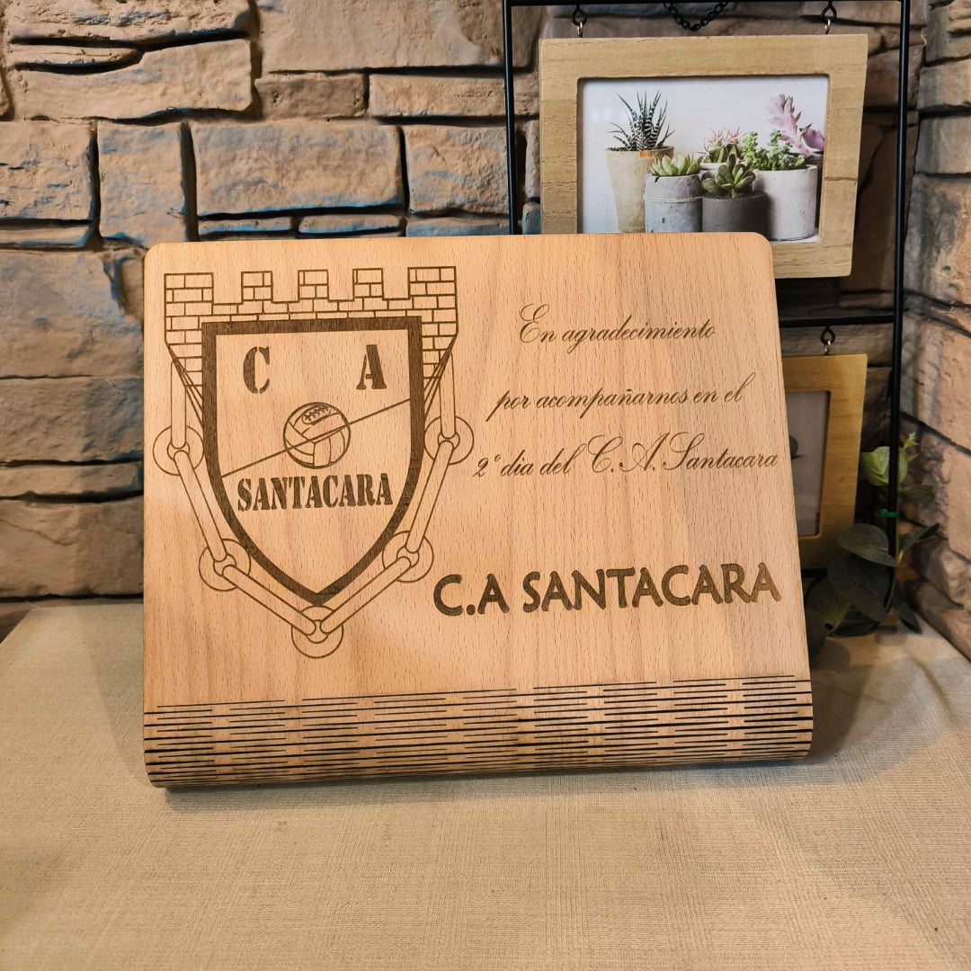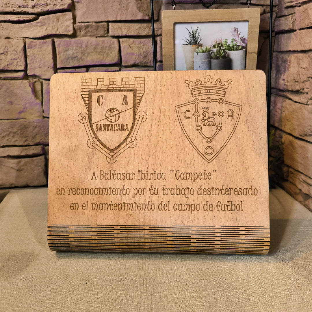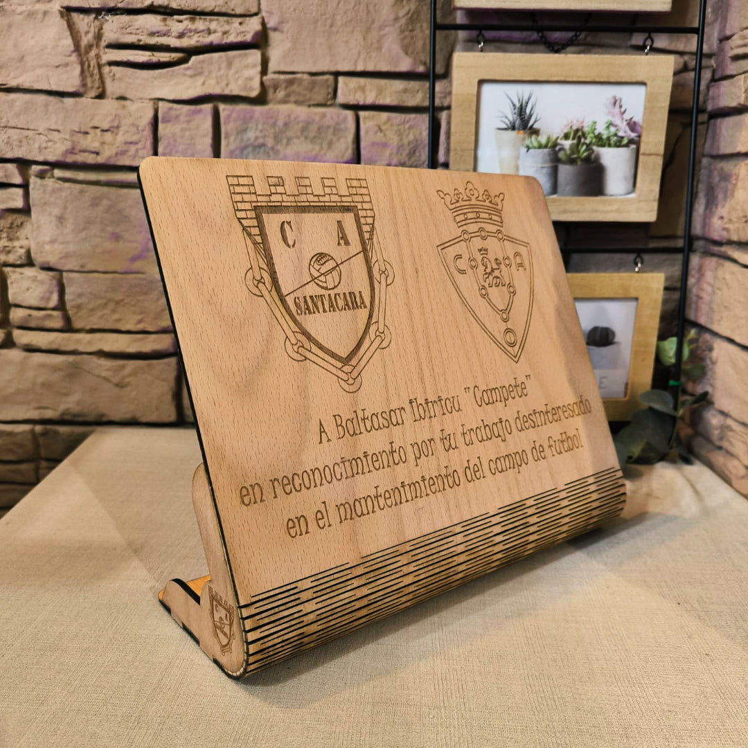 Un detalle único y elegante para agradecer, homenajear o reconocer a una persona especial. Esta placa de reconocimiento personalizada se elabora en madera de haya, con grabado láser de alta precisión que permite incluir textos, logotipos, escudos o diseños temáticos a gusto.